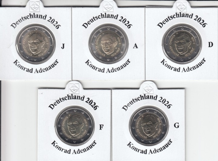Weiterführende Links zu "Deutschland 2 € 2026, K. Adenauer, Bankfrisch A-J kpl."
